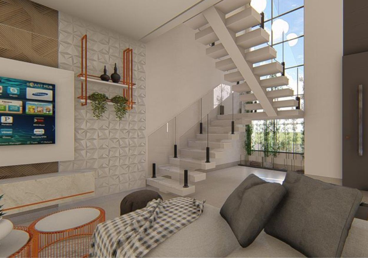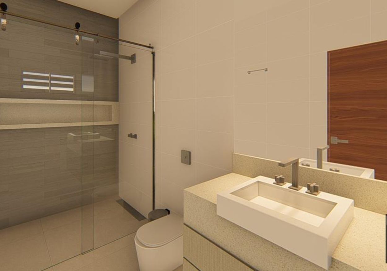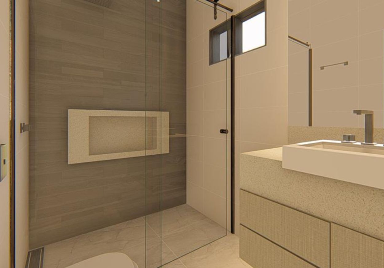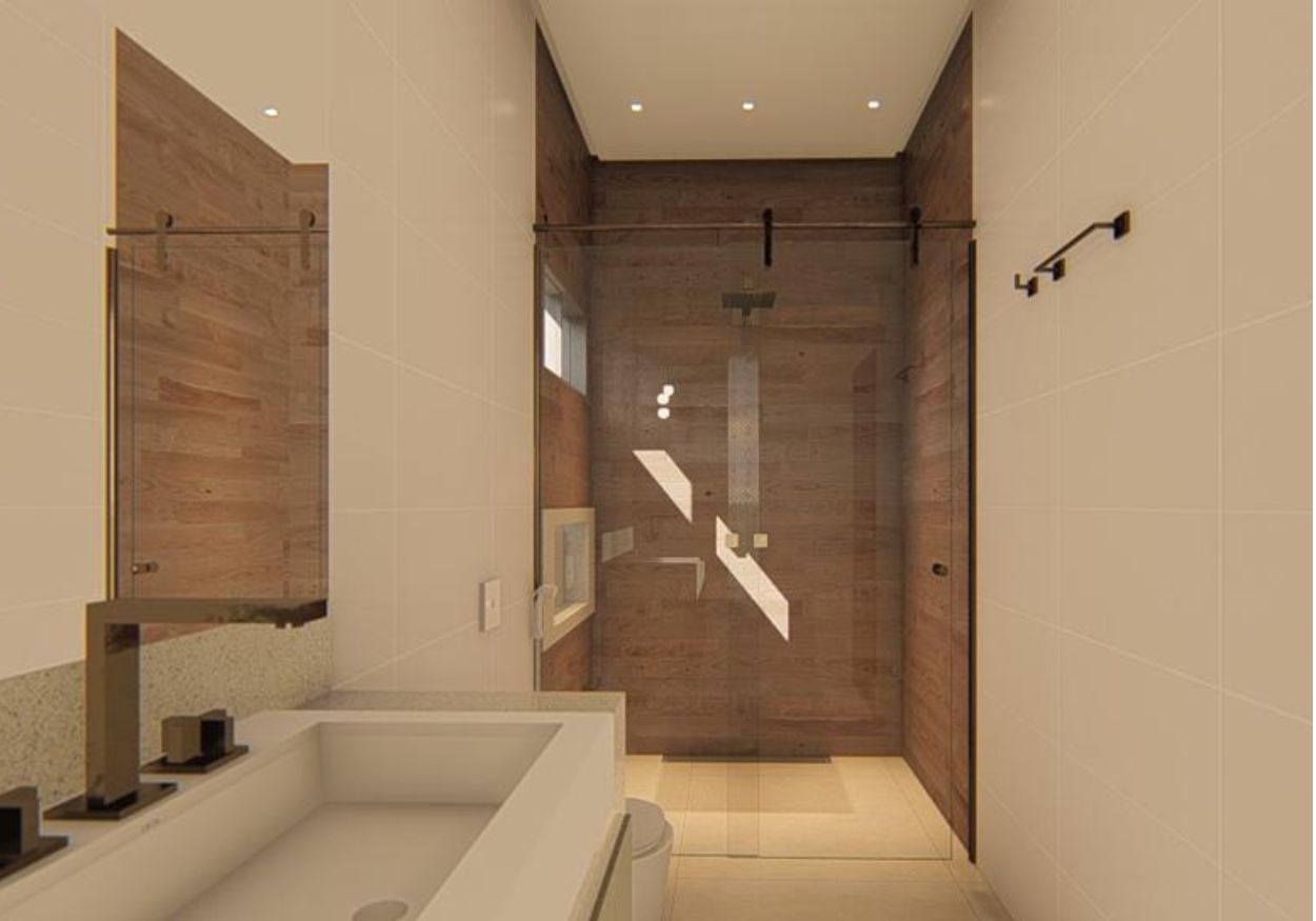• Toda em porcelanato e gesso acartonado